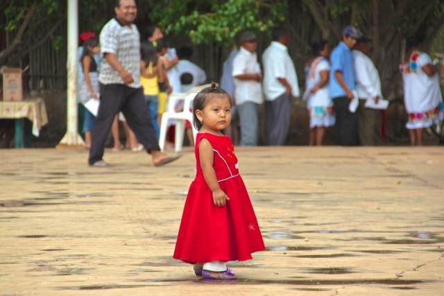 Sacalaca ist ein Dorf im Mayadschungel. Unbefestigte Straßen führen vorbei an Holz- oder Steinhütten. Die Hitze und Luftfeuchtigkeit sind drückend, die Arbeit fällt uns heute schwer. Die Straßen sind leer, die meisten Menschen bleiben in ihren Wohnungen, ruhen sich in Hängematten aus. In vielen Hütten läuft der Fernseher. Es fällt auf, dass hier viele Menschen bedrückt und lethargisch wirken. Den Grund dafür wissen wir nicht, auch wenn es leicht wäre, diese Beobachtung mit den harten Lebensumständen in diesem Dorf in Verbindung zu bringen, der Armut und der anstrengenden Feldarbeit, die viele Einwohner verrichten, um zu überleben. Die meisten Kinder hier werden das Leben ihrer Eltern fortsetzen. Da sie kaum eine Möglichkeit haben, eine weiterführende Schule zu besuchen, sind ihre Zukunftsperspektiven begrenzt.